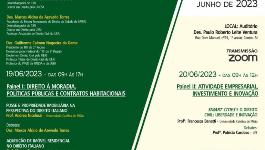 Desembargador Guilherme Calmon participa, em junho, da VI Jornada Ítalo-Brasileira de Direito Privado